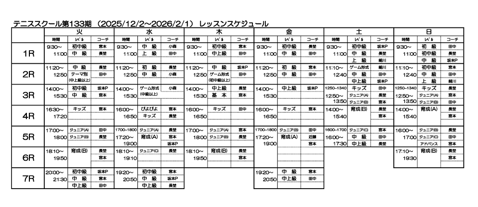 レッスンスケジュール