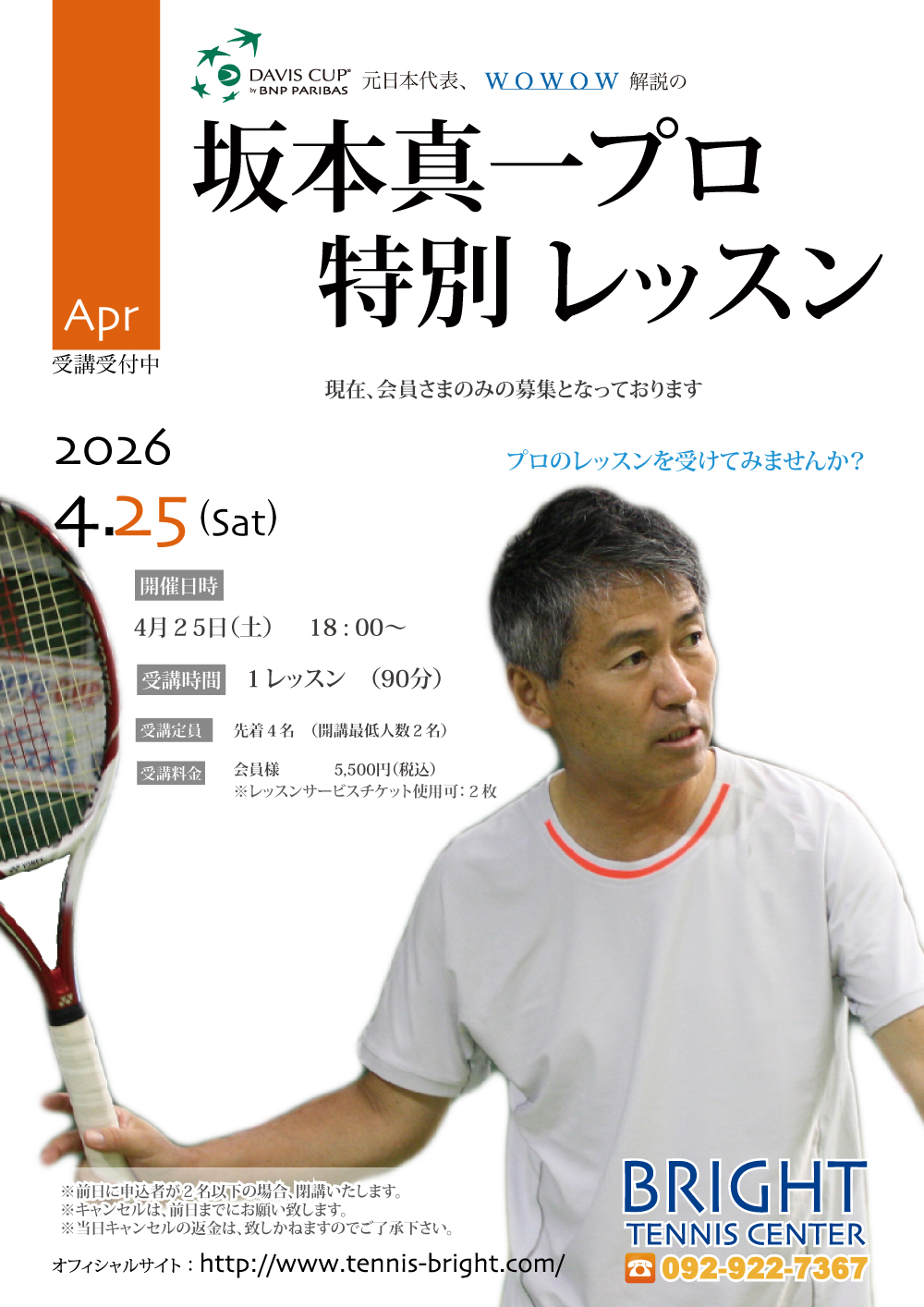 4月の坂本プロ特別レッスンは、25日となります。